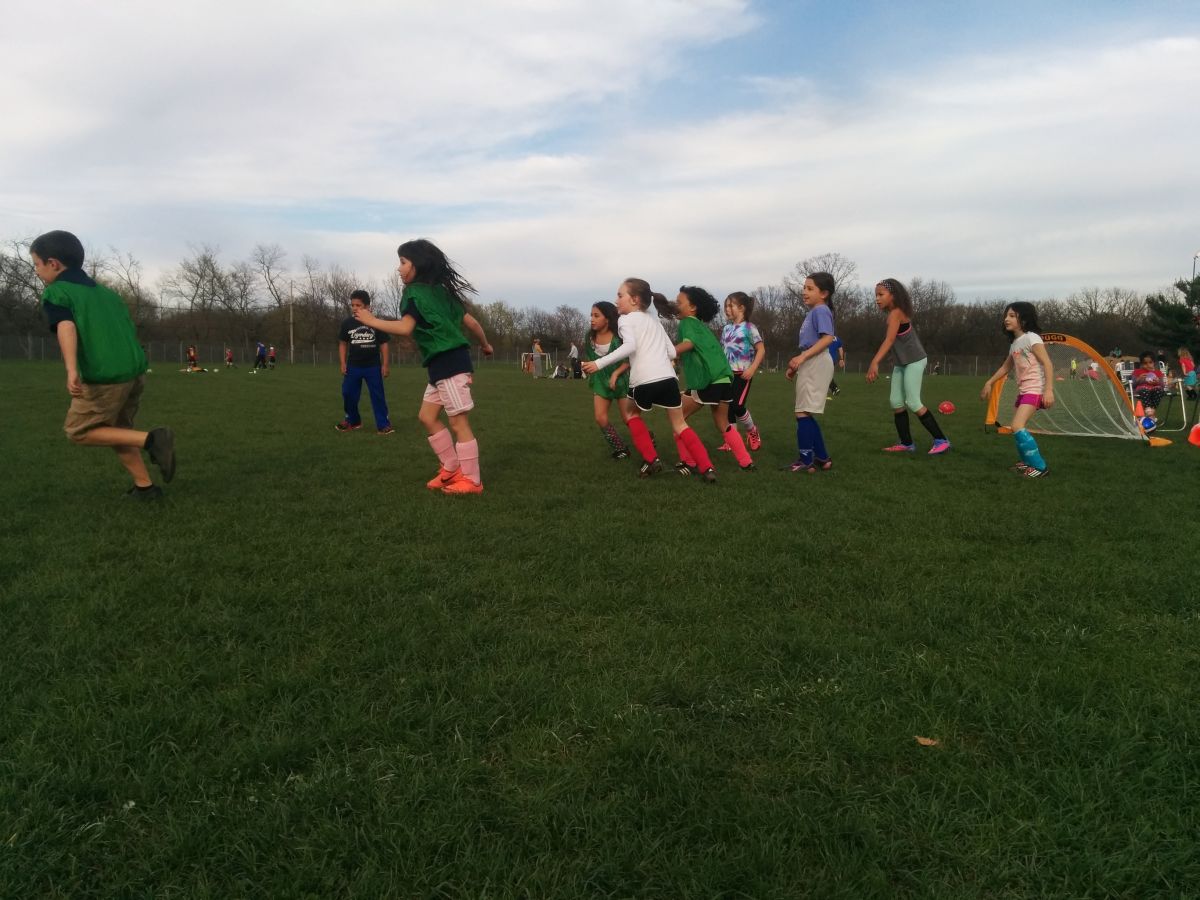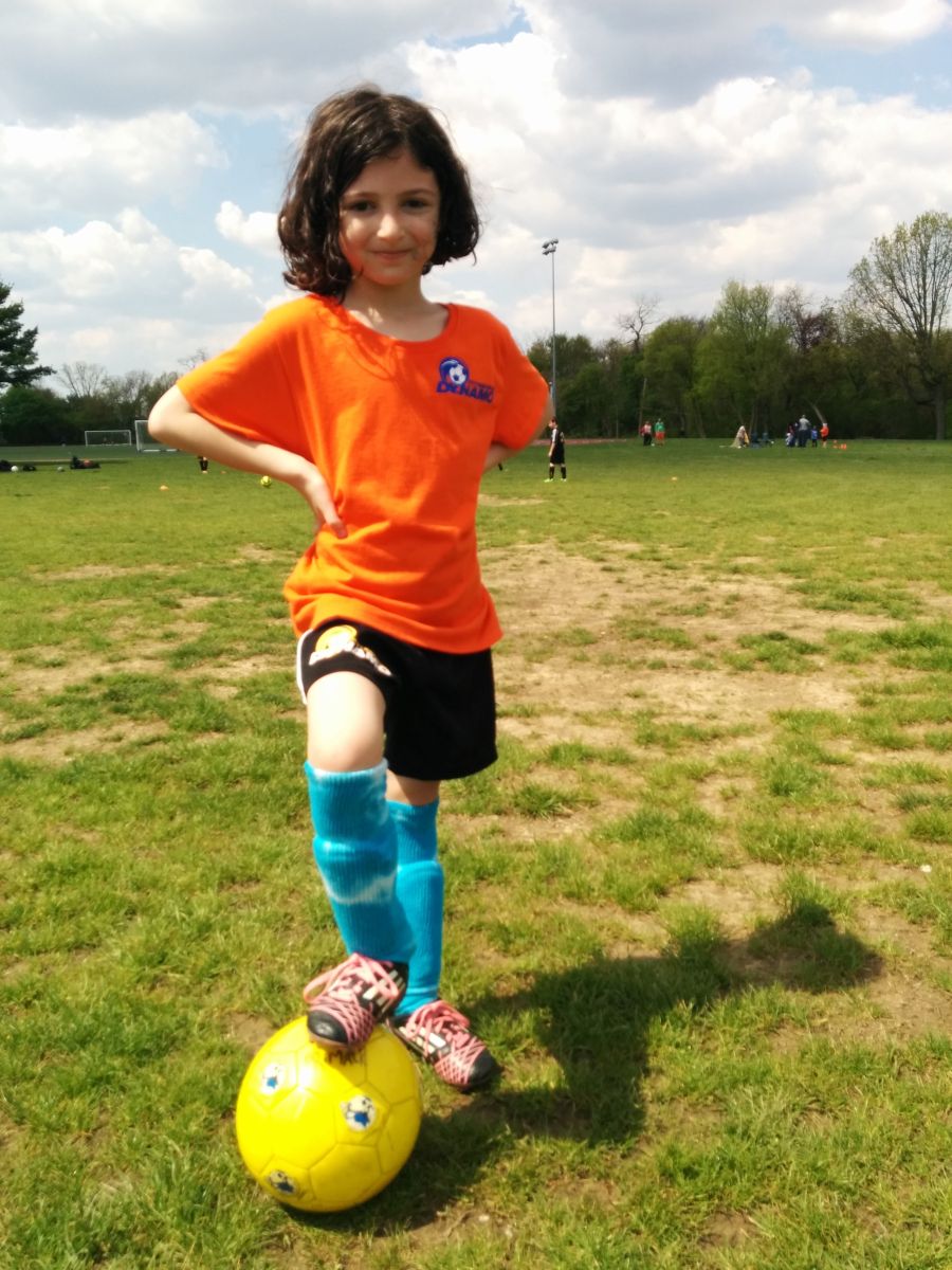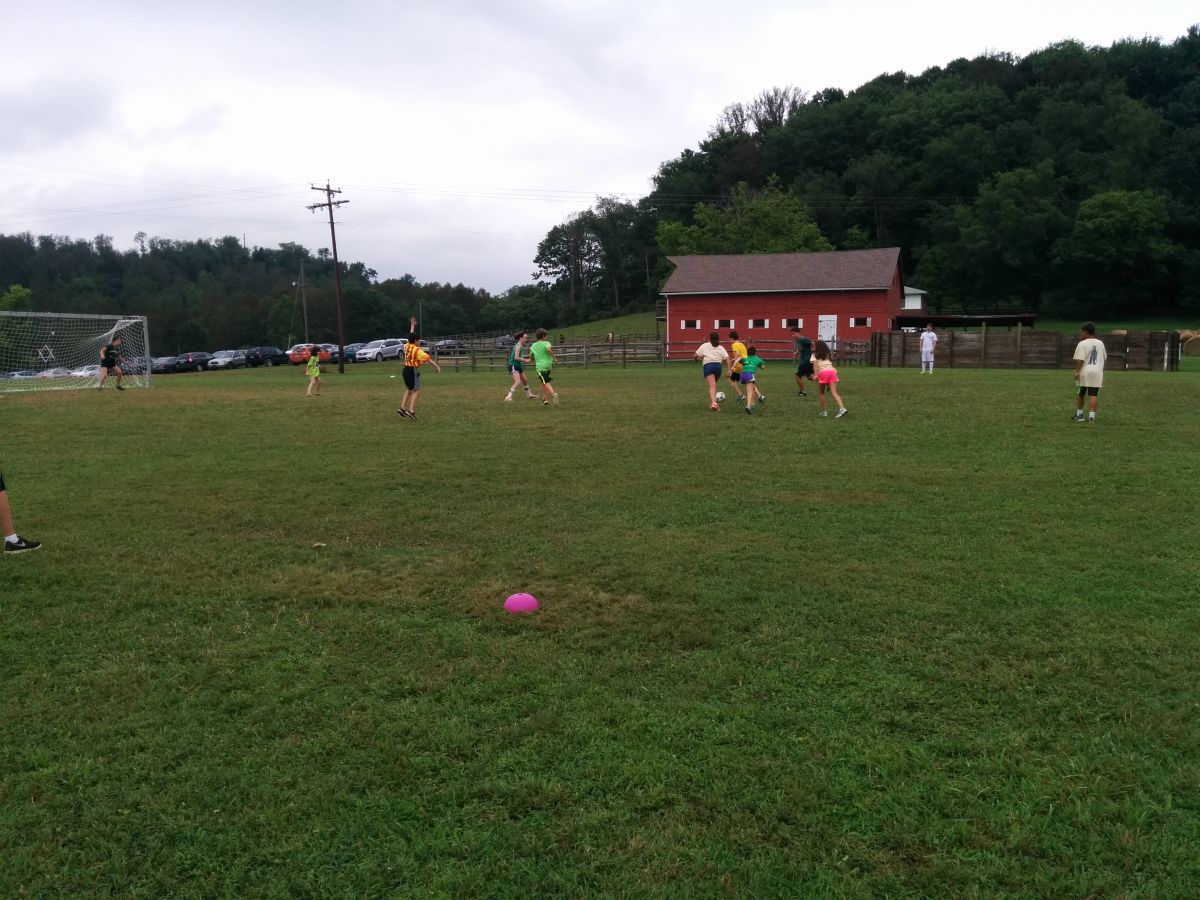 Micah playing soccer at Emma Kaufmann Camp, where we went for a few days so I could volunteer as camp doctor